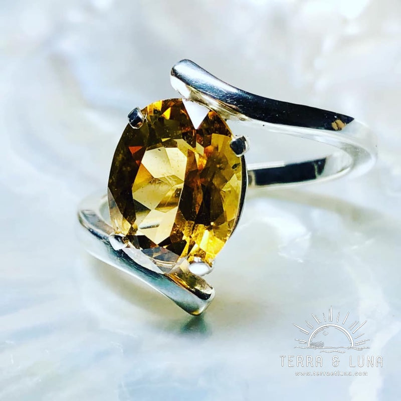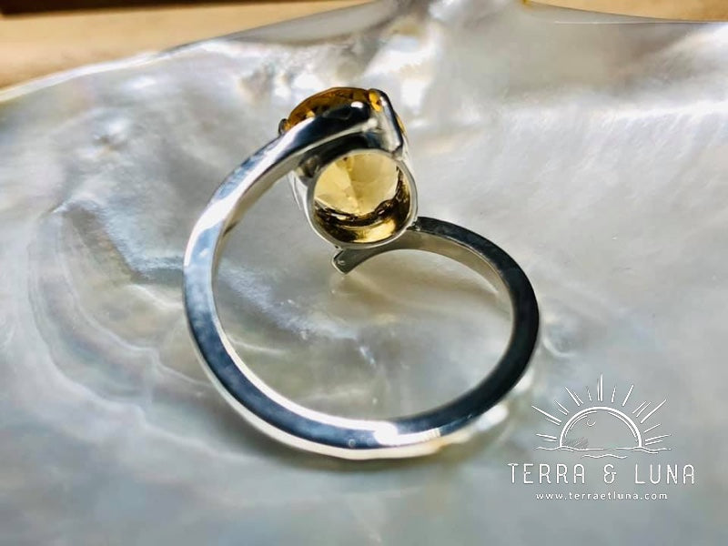 Bague asymétrique composée d'une Citrine naturelle du Brésil, coupe ovale facettée et serti griffes sur bague en argent massif 925/000.